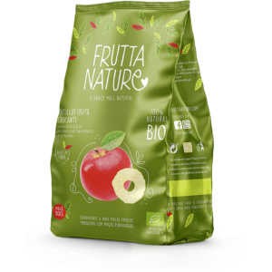 Frutta Nature é um snack 100% natural e simples. Elaborado exclusivamente a partir de frutas, sem conservantes nem aditivos e sem glúten. São unicamente finas fatias de fruta, muito saborosas e crocantes. Capazes de te satisfazer, mas sem sentimento de culpa.